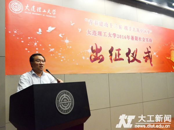 7月14日下午,2016年大连理工大学“青春建功十三五·携手共筑中国梦”大学生暑期社会实践出征仪式在主楼一楼报告厅举行。校党委副书记、副校长宋丹,宣传部、发展规划处、教务处、学生工作处、招生就业处、校友工作处、团委相关负责人,各学部(院)团委书记、各实践团队指导教师及实践队员代表出席仪式。校团委副书记王杨主持仪式。